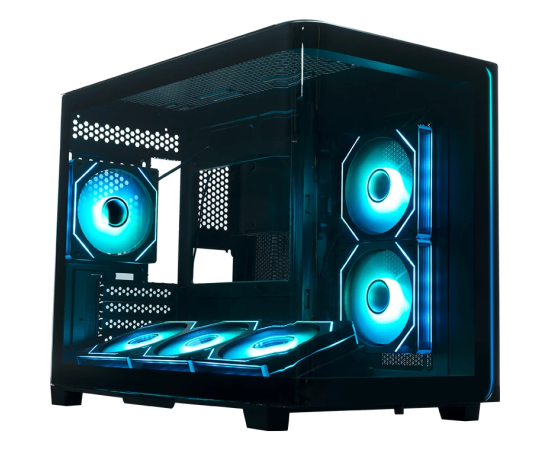 Корпус XASTRA QR600M 6ARGB C10-UC (QR600M-6FM12A-C10-UC-L) Black mATX/Aquarium/Curve Glass/Led Strip/6x120mm ARGB PWM FM fans/ Argb+PWM HUB 10port