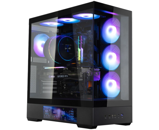 Корпус ZALMAN P40 DS, ATX, Black, Window, 9.1-inch LCD screen, 2xCombo(2.5” or 3.5”), 1x2.5”, 1xUSB Type-C, 2xUSB3.0, Side 3x120mm ARGB, Rear 1x120mm