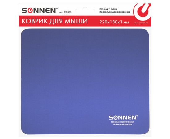 Коврик для мыши Sonnen 513308 Blue, резина + ткань, 220х180х3мм