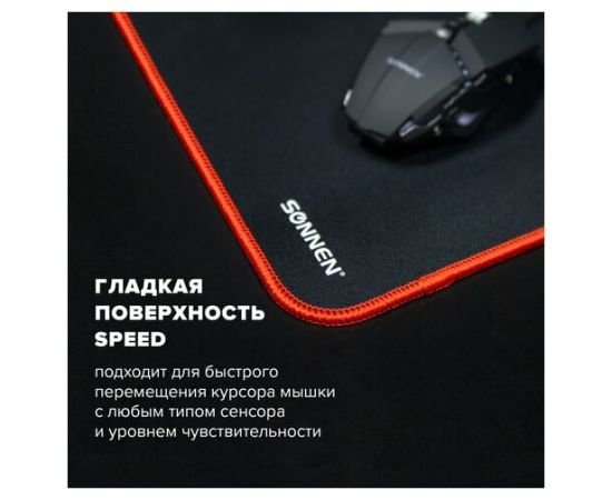Игровой коврик для мыши SONNEN "CYBER OUTLAW" подходит для оптических и лазерных мышей с любой чувствительностью и любым типом сенсора, также обладает устойчивым сцеплением с поверхностью стола.