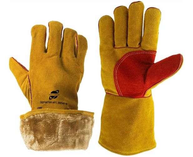 Экстрапрочные пятипалые, зимние краги сварщика, с дополнительным усилением ладони и большого пальца, изготовлены из бычьего спилка (более прочного, чем, например, говяжий) толщиной 1,2-1,4 мм, класса А. Подкладка из искуственного меха. Двойные швы. Краги прошиты кевларовой нитью для максимальной защиты от искры. ТР ТС 019/2011; EN 420; EN 388; EN 407; EN 511