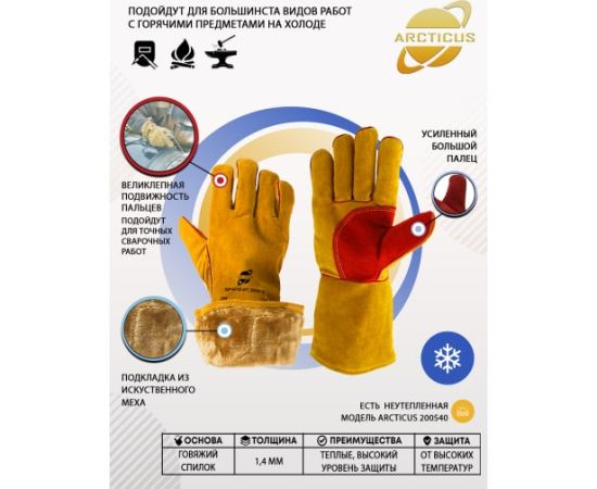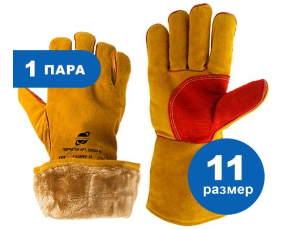 Технические характеристики зимних спилковых пятипалых краг ARCTICUS КРС желтые, AB класс, искусственный мех, р. 11 200540 W-111