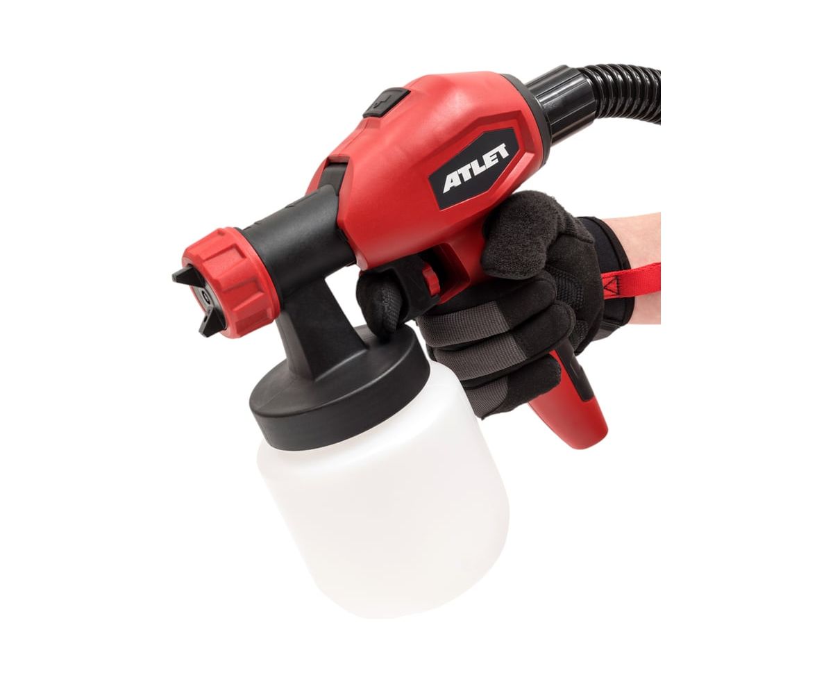 Электрический краскопульт ATLET PRG650N подходит для быстрого и легкого нанесения лакокрасочных материалов. Максимальная вязкость 80 DIN позволяет работать с красками, морилками, лаками, грунтовками, маслами, антисептиками и пропитками. Производительность составляет 0,8 л/мин. С высокогибким шлангом длиной 1,8 м для большой маневренности.