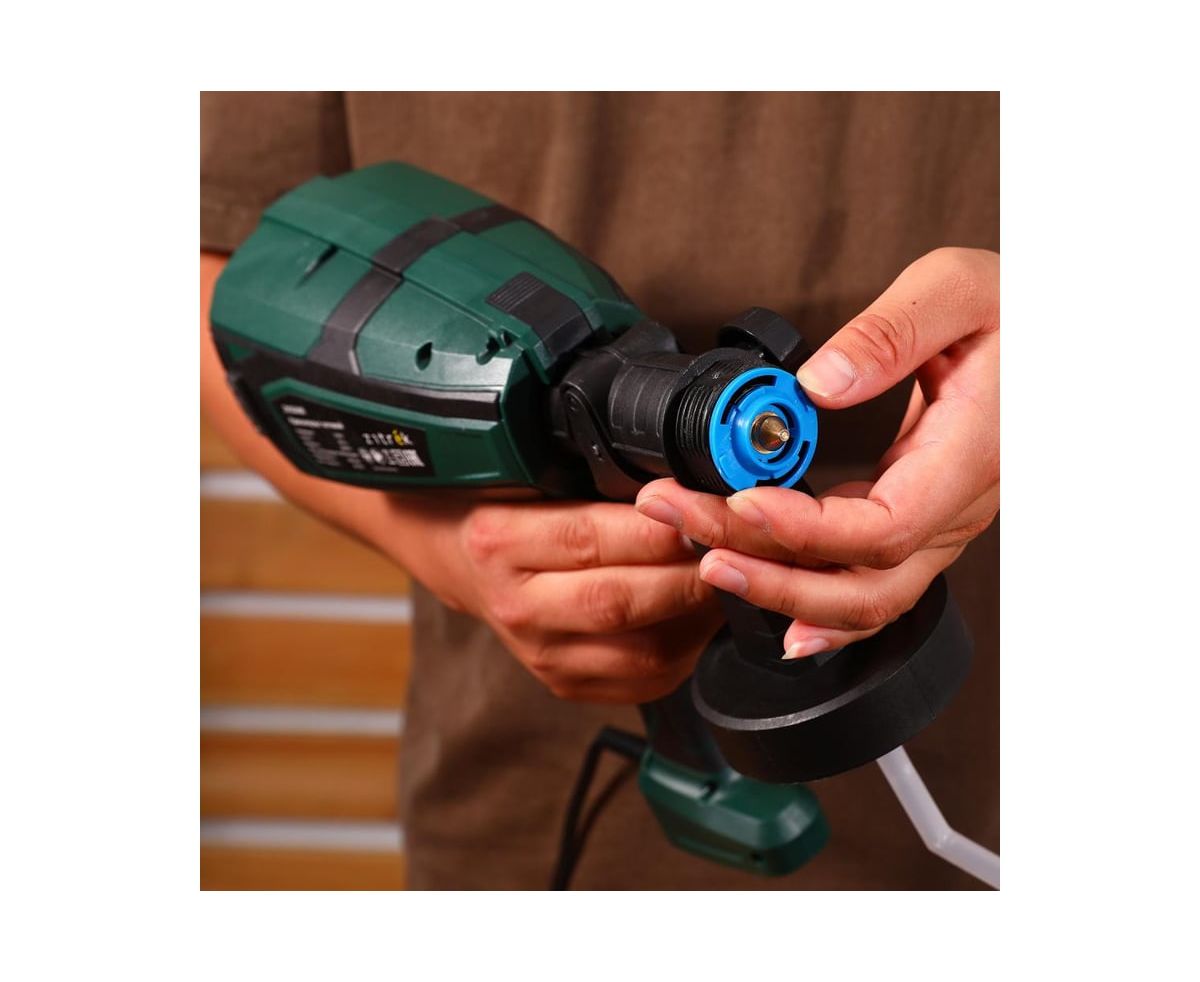 - Поворотный регулятор формы факела, дальности распыления, расхода краски