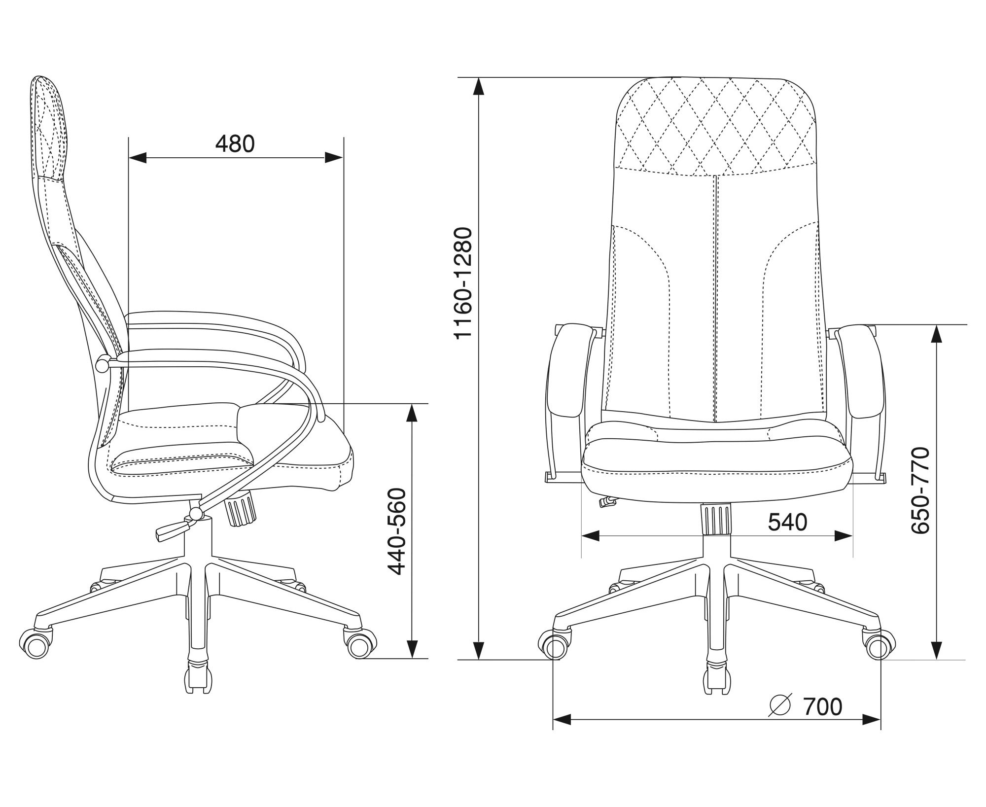 Высота с подлокотниками MIN