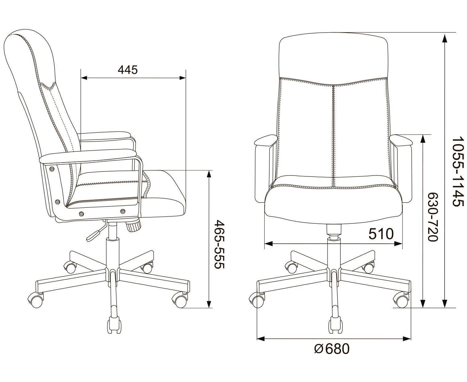 Высота с подлокотниками MIN