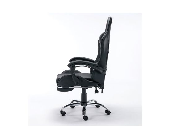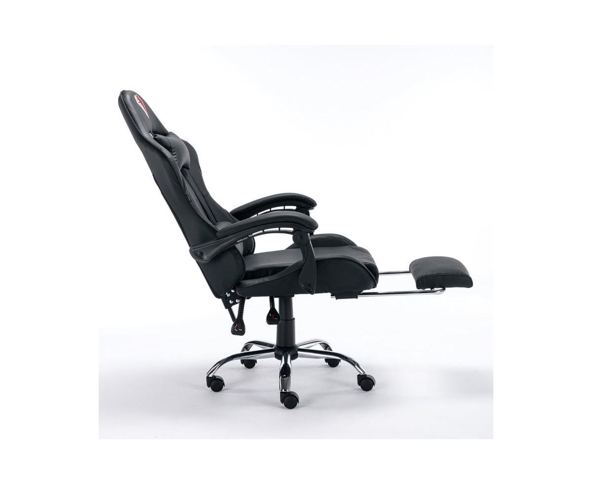 Широкие пластиковые подлокотники с мягкими накладками позволят с удобством разместиться в кресле, а чтобы полностью расслабиться, достаточно откинуть подставку для ног и принять удобное положение.