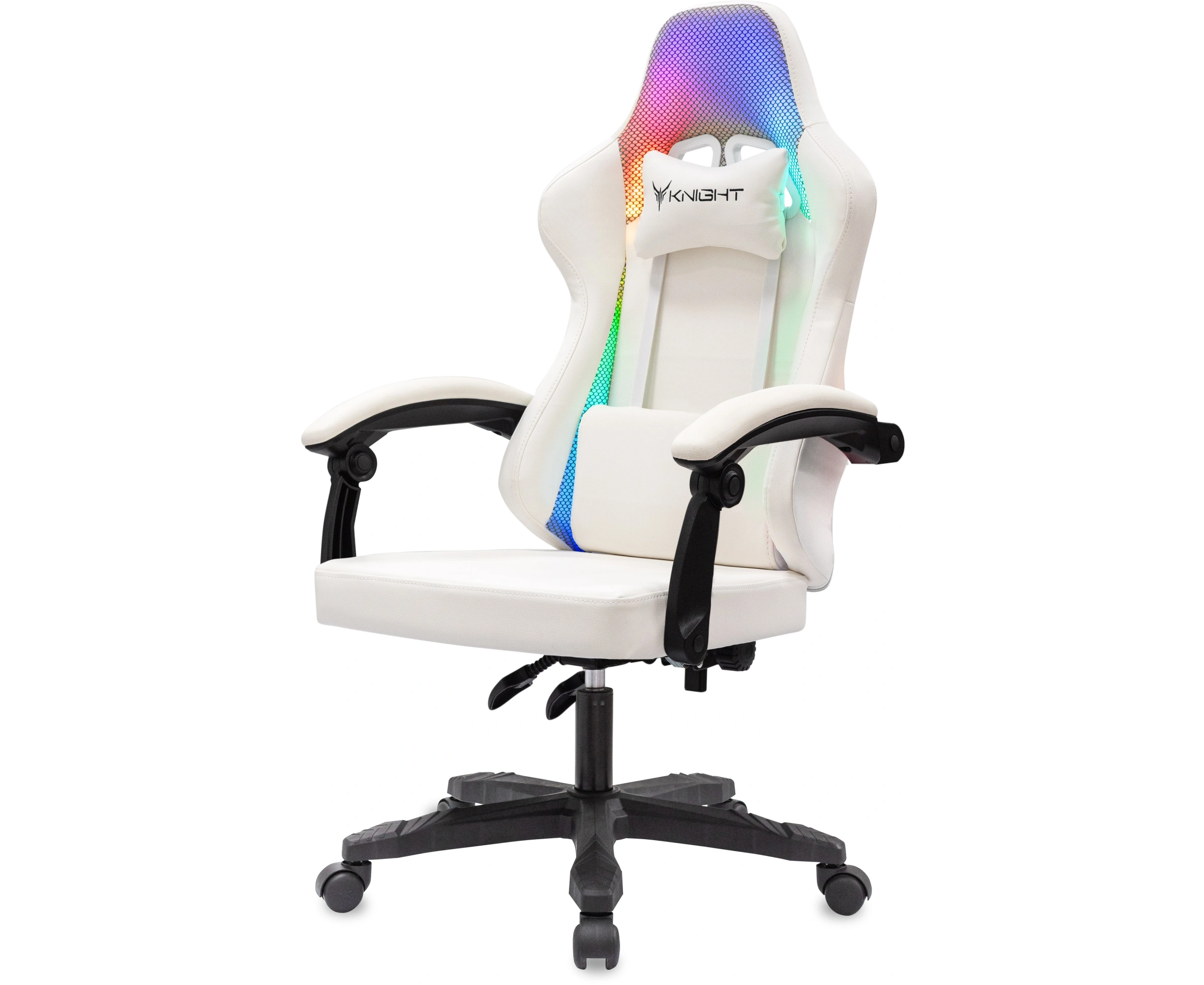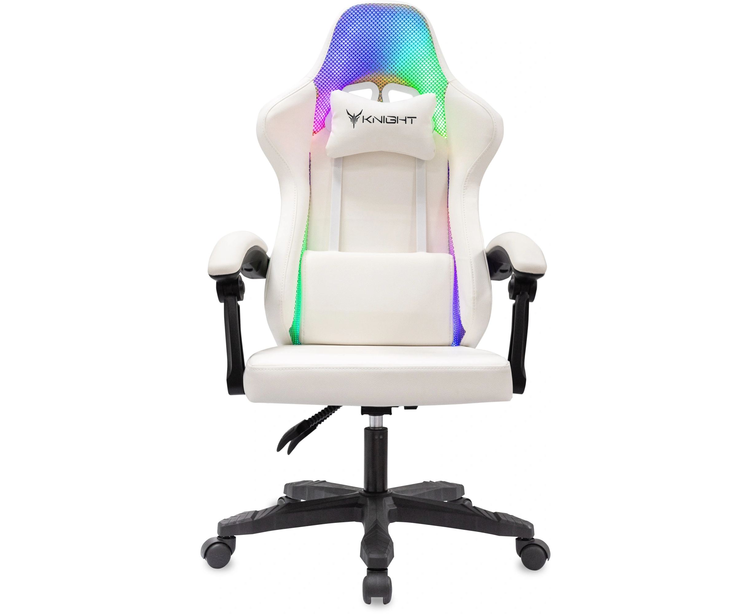 Кресло игровое Knight Wolf RGB белый экокожа/сетка с подголов. крестов. пластик