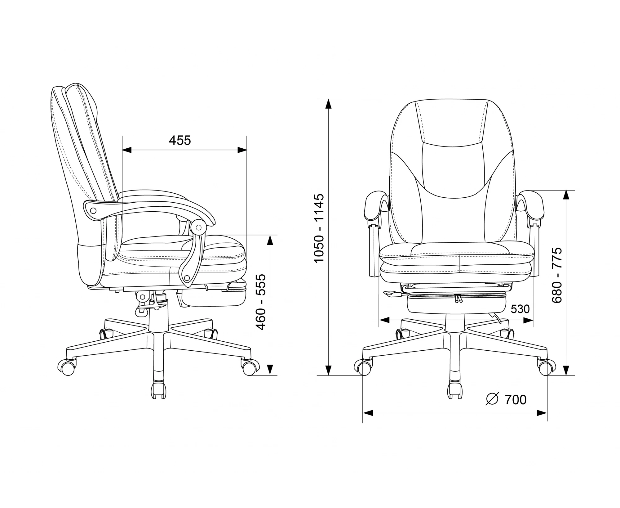 Высота с подлокотниками MIN
