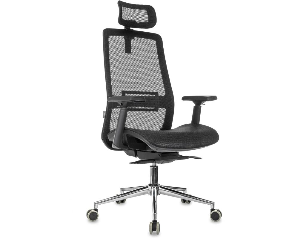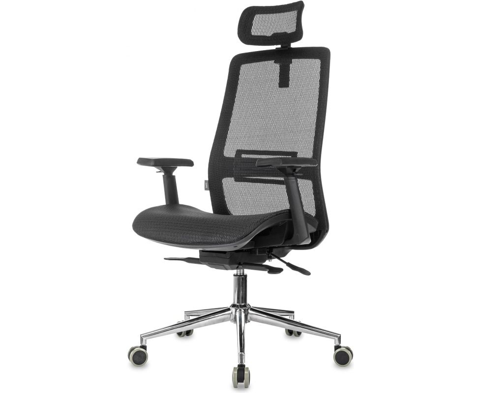 Кресло руководителя Бюрократ MC-912-H/SIT-M/B черный сетка с подголов. крестов. металл хром