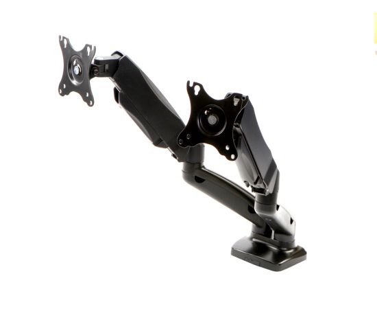 Описание: Независимая регулировка каждого экрана — мониторы на кронштейнах можно поворачивать вокруг совей оси на 360°, наклонять вверх и вниз, придвигать или удалять от себя. Два варианта установки на столешницу: за край стола и на поверхность стола.