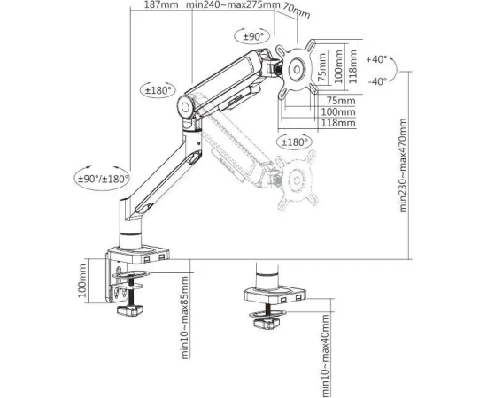 Настольный кронштейн для монитора с системой газ-лифт. Встроенный пружинный механизм натяжения поможет для идеальной регулировки веса.