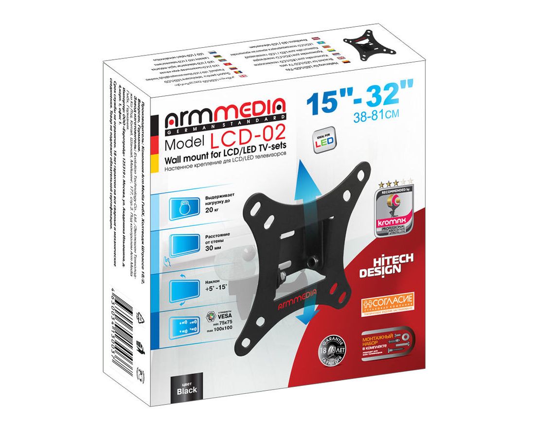 Кронштейн для телевизора Arm Media LCD-02 черный 15"-32" до20кг наклон