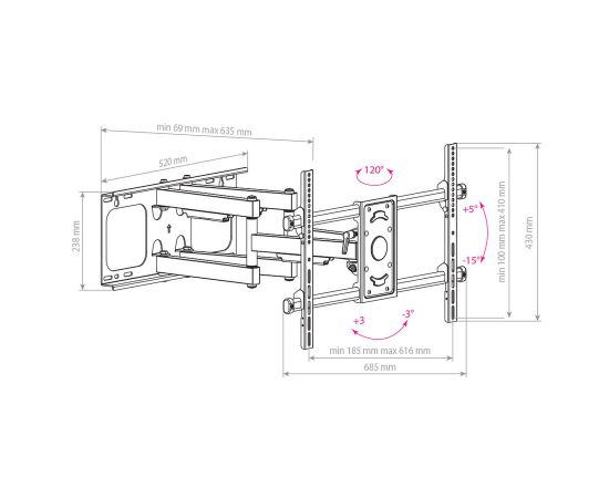 32"-90" Кронштейн Arm Media PARAMOUNT-70 Наклонно-поворотный черный до65кг