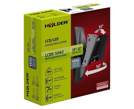 Кронштейн Holder LCDS-5062 белый глянец 19"-32" макс.30кг настенный поворот и наклон