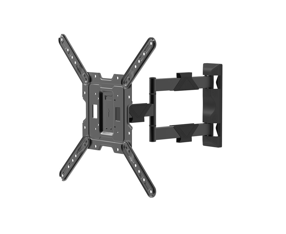 Наклонно-поворотный ТВ кронштейн с увеличенным выносом Harper TVFW-65 поддерживает стандарты VESA: 75x75, 100x100, 200x100, 200x200, 300x300, 400x400 мм, совместим с диагоналями телевизоров от 17 до 65 дюймов и выдерживает весовую нагрузку до 35 кг. Настенный телевизионный кронштейн Harper TVF-65 позволяет изменять угол наклона ТВ от –15° до +5°, угол наклона в горизонтальной плоскости ± 4°, поворачивать панель влево/вправо на 180° и отодвигать телевизор от стены на расстояние до 423 мм (в сложенном состоянии минимальное расстояние до стены 62 мм), а раздельная конструкция, состоящая из настенной пластины и передней панели с крепёжными направляющими, обеспечивает простую сборку кронштейна вместе с установленным на неё телевизором. В комплект поставки Harper TVFW-65 входят крепежные принадлежности: анкеры и дюбели, подходящие для монтажа ТВ кронштейна на разные поверхности: бетонные и кирпичные стены, деревянные плиты и доски (для других типов оснований необходимо приобрести специализированный крепёж). Для удобства использования кронштейн Harper TVFW-65 оборудован держателями кабелей.