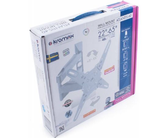 22"-65" Кронштейн Kromax ATLANTIS-40 Наклонно-поворотный белый макс.40кг Vesa 600x400