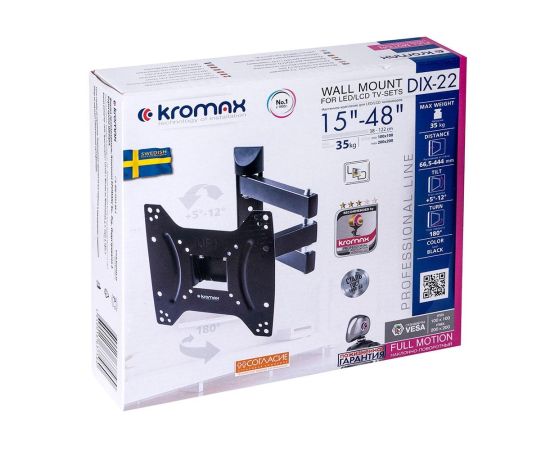 15"-48" Кронштейн Kromax DIX-22 черный" макс.35кг поворотно-выдвижной и наклонный