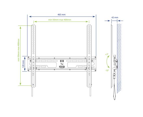 Поддержка крепления VESA 50×50, 75×75, 100×100, 200×100, 200×200, 200×300, 300×100, 300×200, 400×200, 300×300, 300×400, 400×300, 400×400