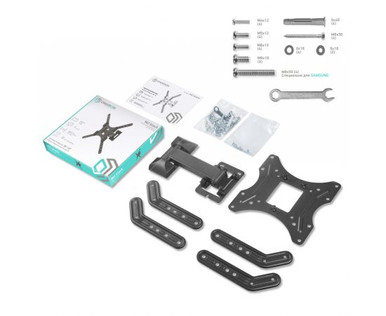 Дополнительная информация: угол наклона: -2° - +12°; угол поворота: 180°; вылет от стены: 40-210 мм; корректировка экрана по горизонтали -2°/+2°; материал: холоднокатаная сталь, SPCC class