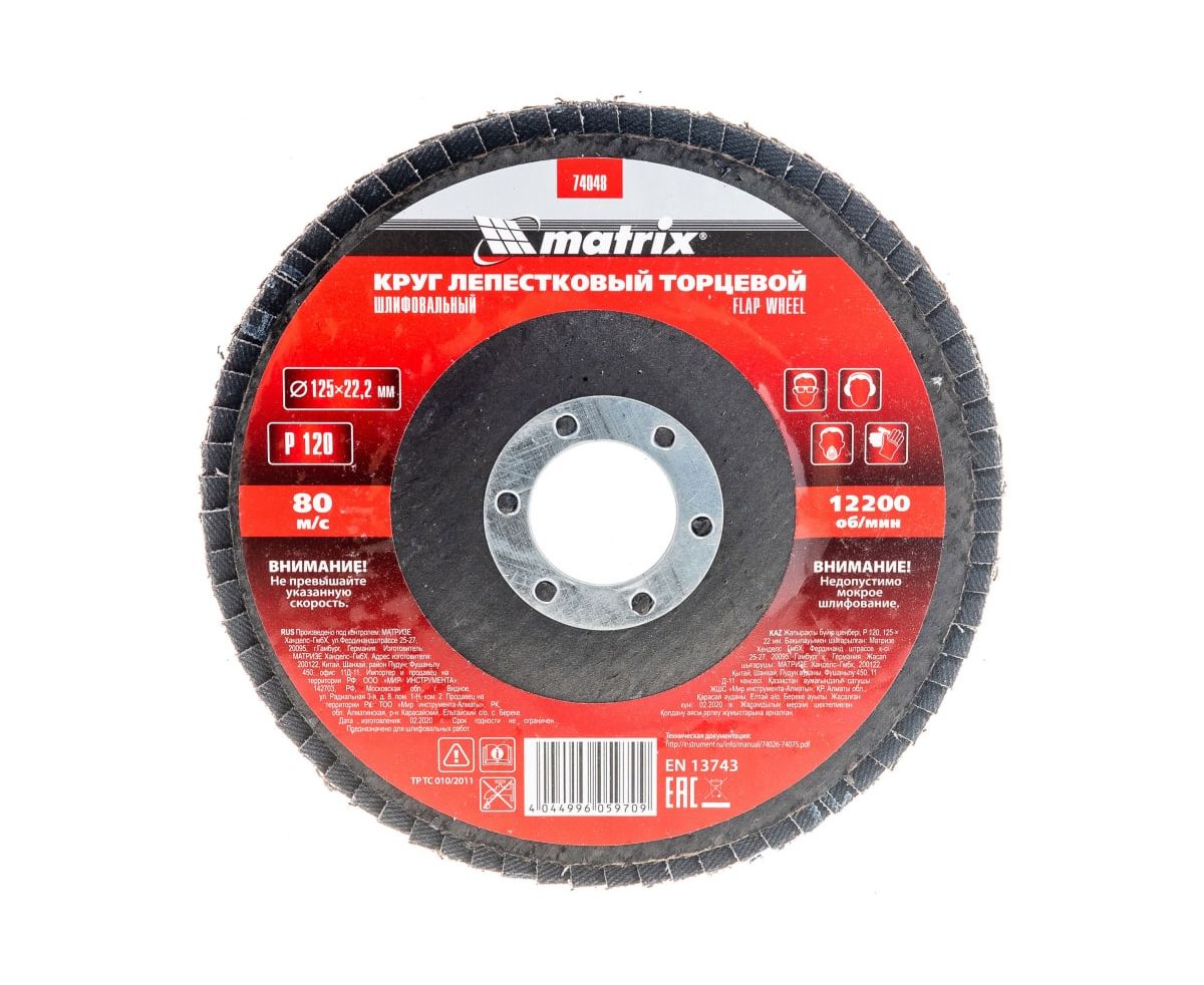 Технические характеристики торцевого лепесткового круга MATRIX 74048
