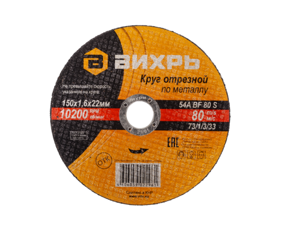 Круг отрезной по металлу Вихрь 73/1/3/52 Про 150х1,6х22мм