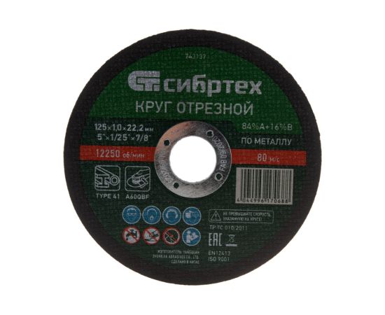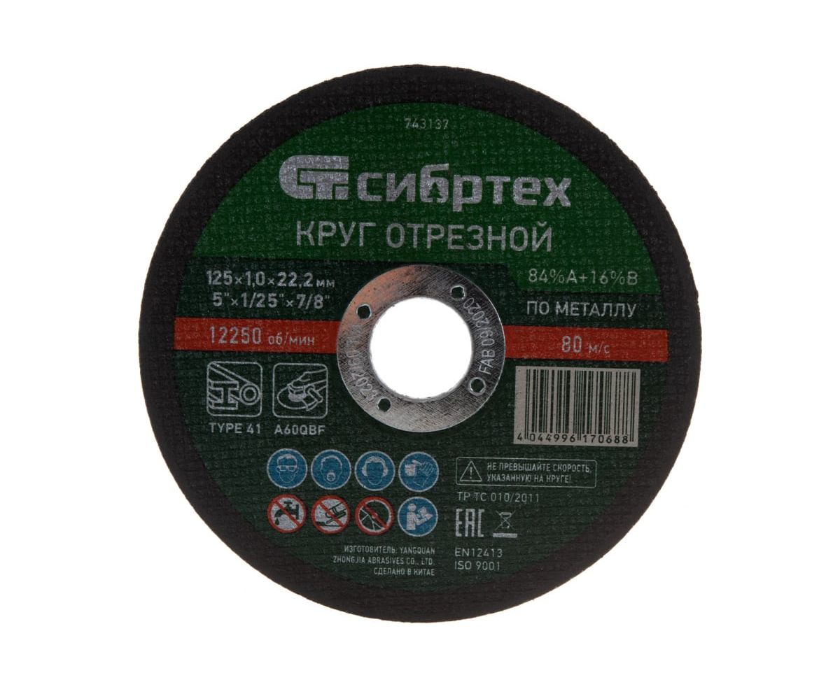 Круг отрезной Сибртех 743137 по металлу, 125х1,0х22,2 мм, 84%A+16%B