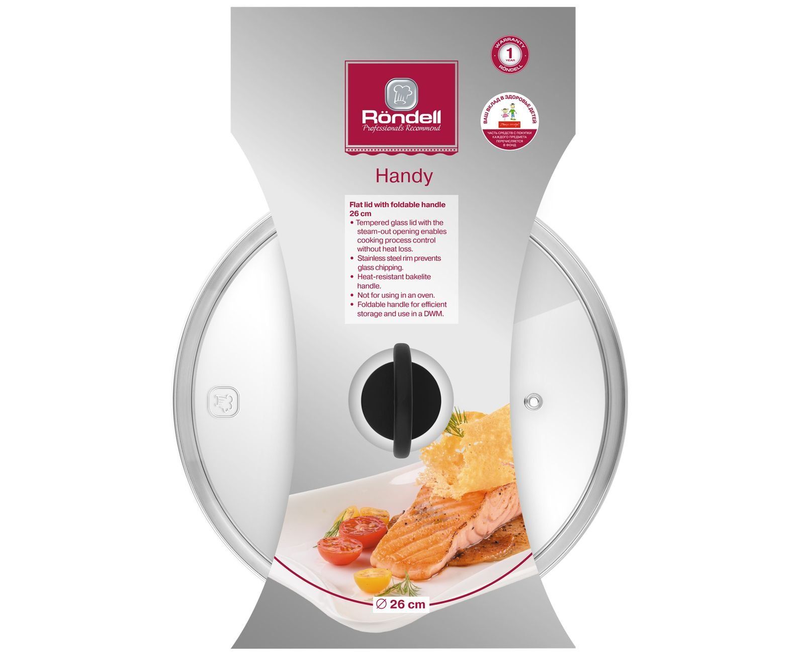 Крышка Rondell Handy RDA-1687 d-26см крыш.прозрачный руч.черная