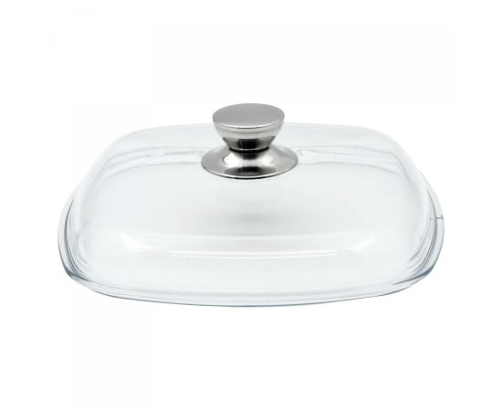 Квадратные крышки изготовлены из боросиликатного стекла, благодаря чему выдерживают высокие перепады температур и устойчивы к повреждениям. Металлическая ручка сильно не нагревается во время готовки, а также обеспечивает крепкое сцепление с крышкой. К главным особенностям данной крышки можно отнести возможность использовать ее в: