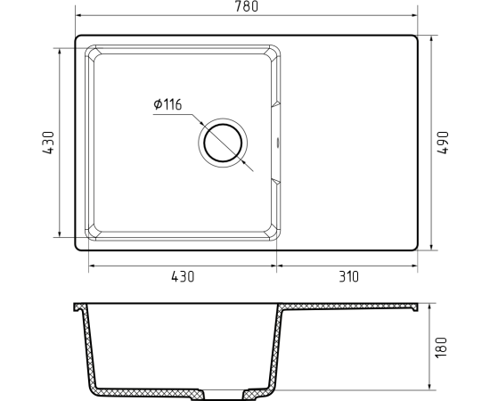 Кухонная мойка GRANFEST Urban 678L black