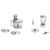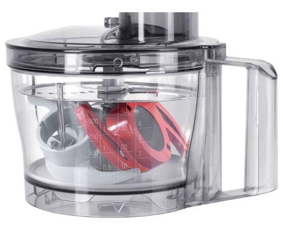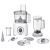 - универсальный нож, насадка для теста, насадка для взбивания, терка, насадка для нарезки ломтиками, общее число насадок: 4