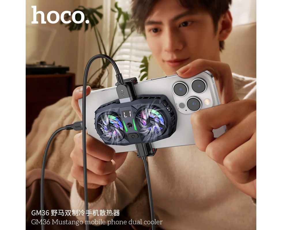Кулер игровой (охлаждение) для смартфонов HOCO GM36 Mustango mobile phone dual cooler (черный)