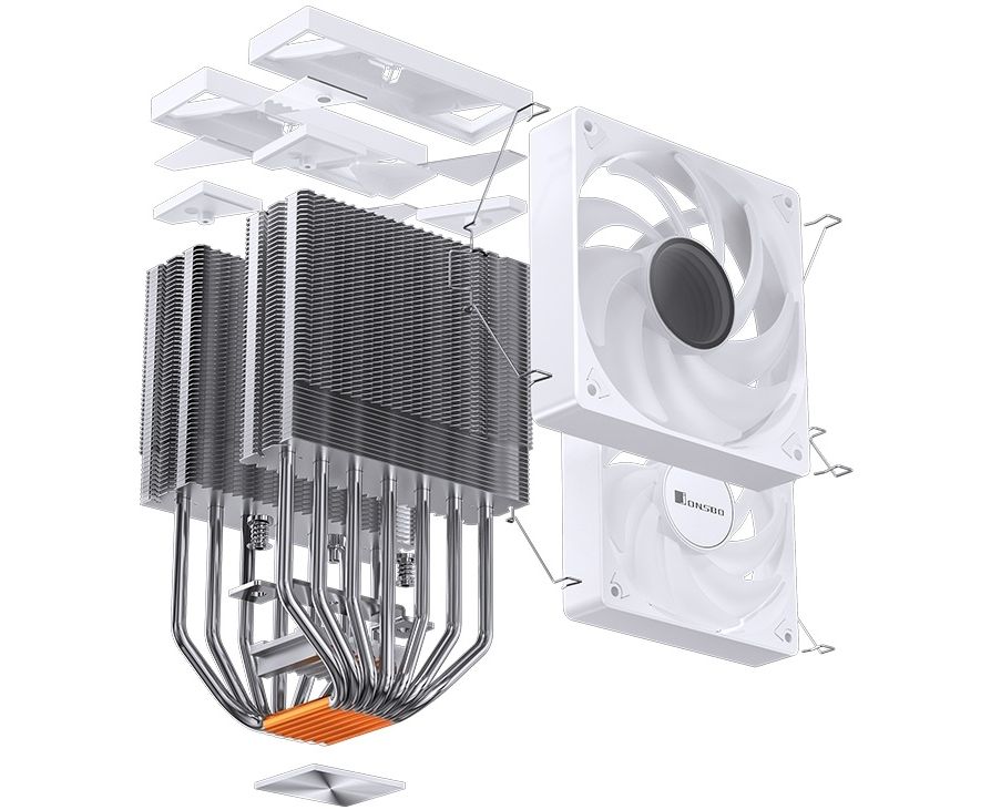 Кулер JONSBO CR-3000 ARGB White LGA20XX/1700/1200/115X/AM5/AM4 (TDP 260W, PWM, 2 x 120mm Black Fan, 7 тепловых трубок, медная база, белый)