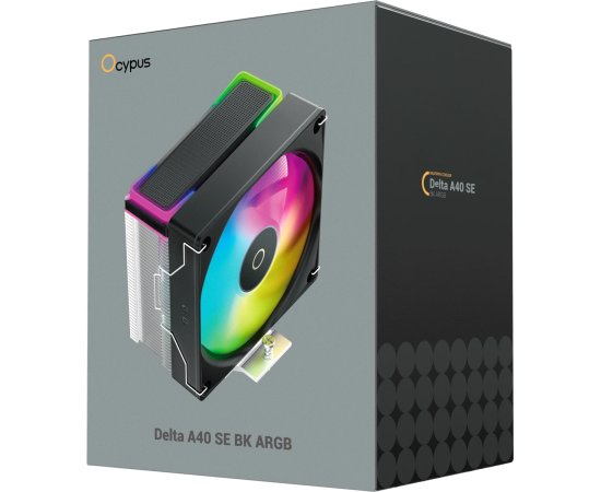 Кулер Ocypus Delta A40 SE BK ARGB, 120mm ARGB Fan, Top ARGB Panel, 4 Heat pipes, 4-pin PWM, 800-1800 RPM, 31DBA, Hydro Bearing, LGA115X