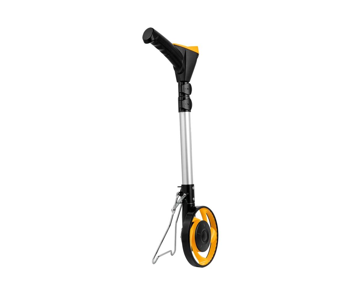Измерительно колесо оснащено удобной подножкой для установки колеса в вертикальное положение.
