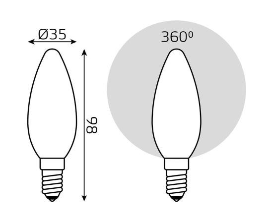 Технические характеристики Gauss Filament свеча, 9W, 590lm, 3000К, Е14, milky, LED 103201109