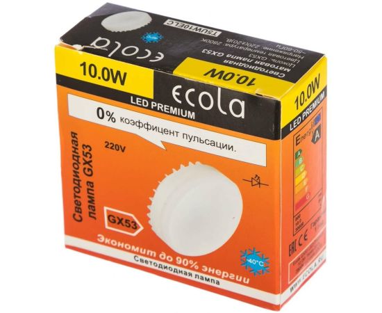 Лампа светодиодная ECOLA GX53 Premium 10,0W Tablet 220V 2800K матовое стекло (композит) 27x75(1/10/100)