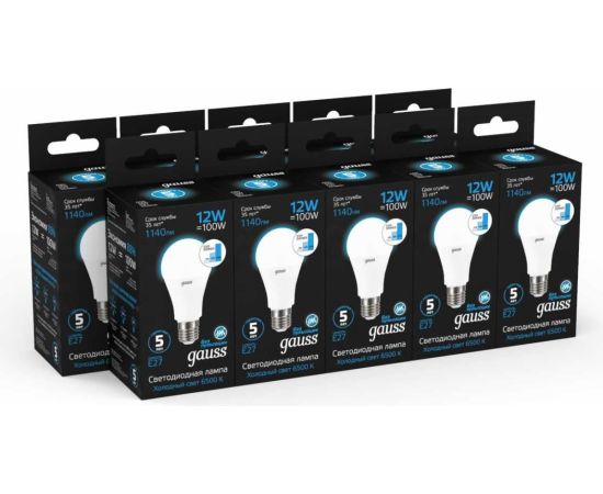 Лампа светодиодная Gauss 102502312-S 12Вт E27 груша 220B 6500K св.свечения белый холодный уп/10шт