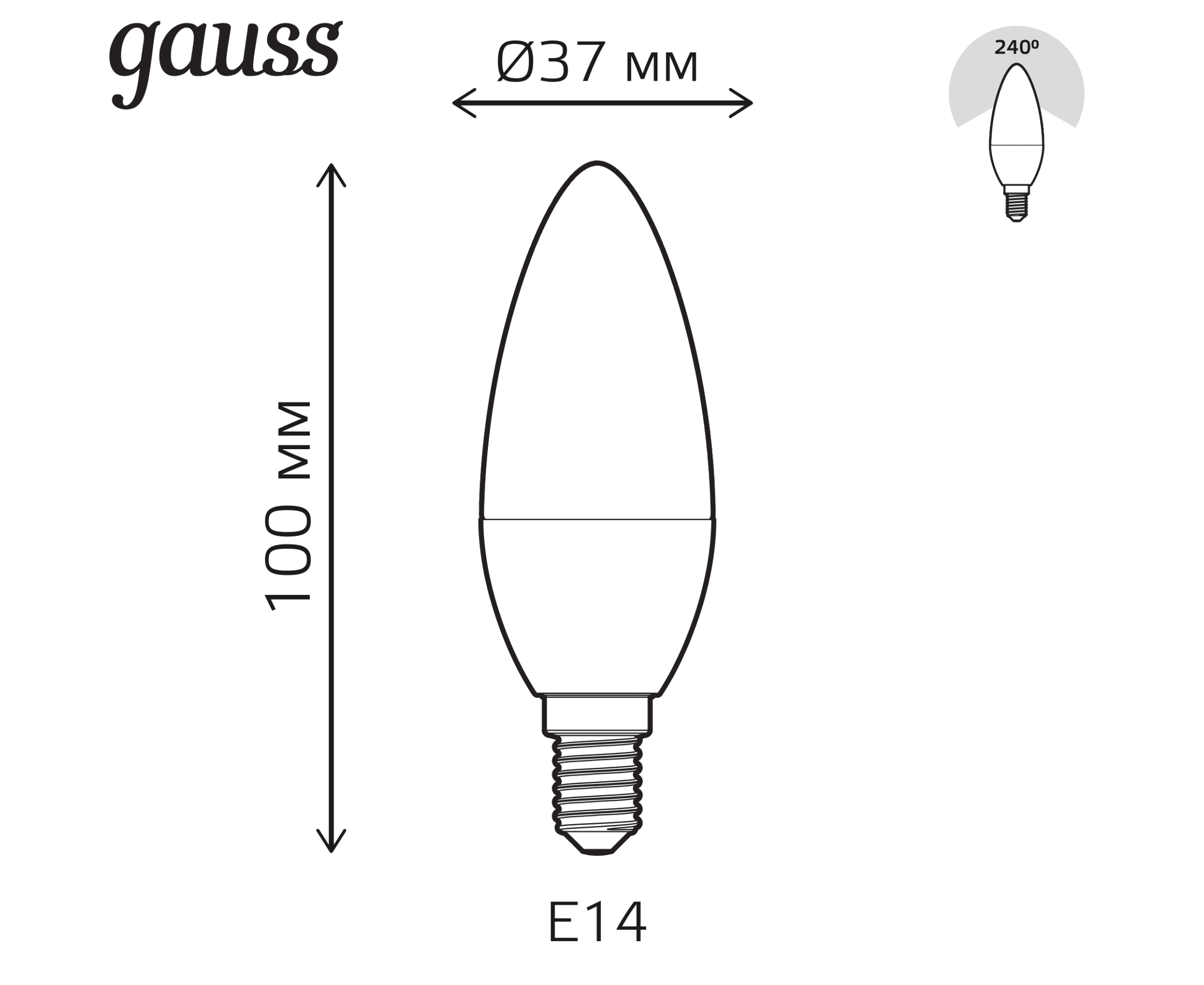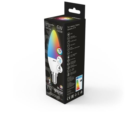 Технические характеристики Gauss Smart LED, свеча, С37, 6W, E14, RGBW+dim 103101406