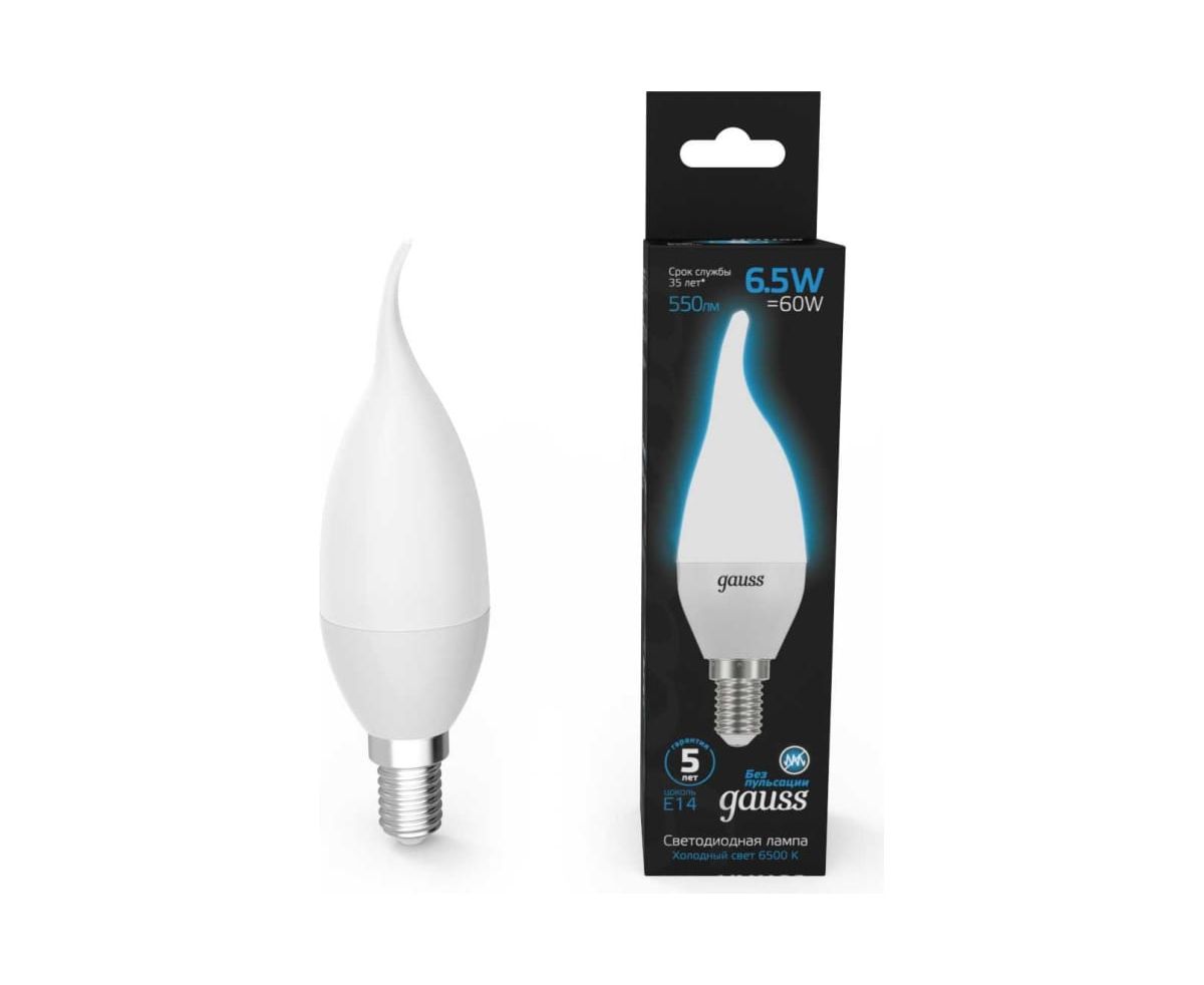 Технические характеристики Gauss Свеча на ветру 6.5W 550lm 6500K E14 LED 104101307