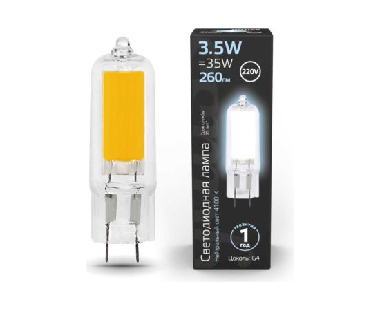 Лампа светодиодная Gauss 107807203 G4 3.5Вт цок.G4 капсула 220B 4100K св.свечения белый нейтральный уп/1шт