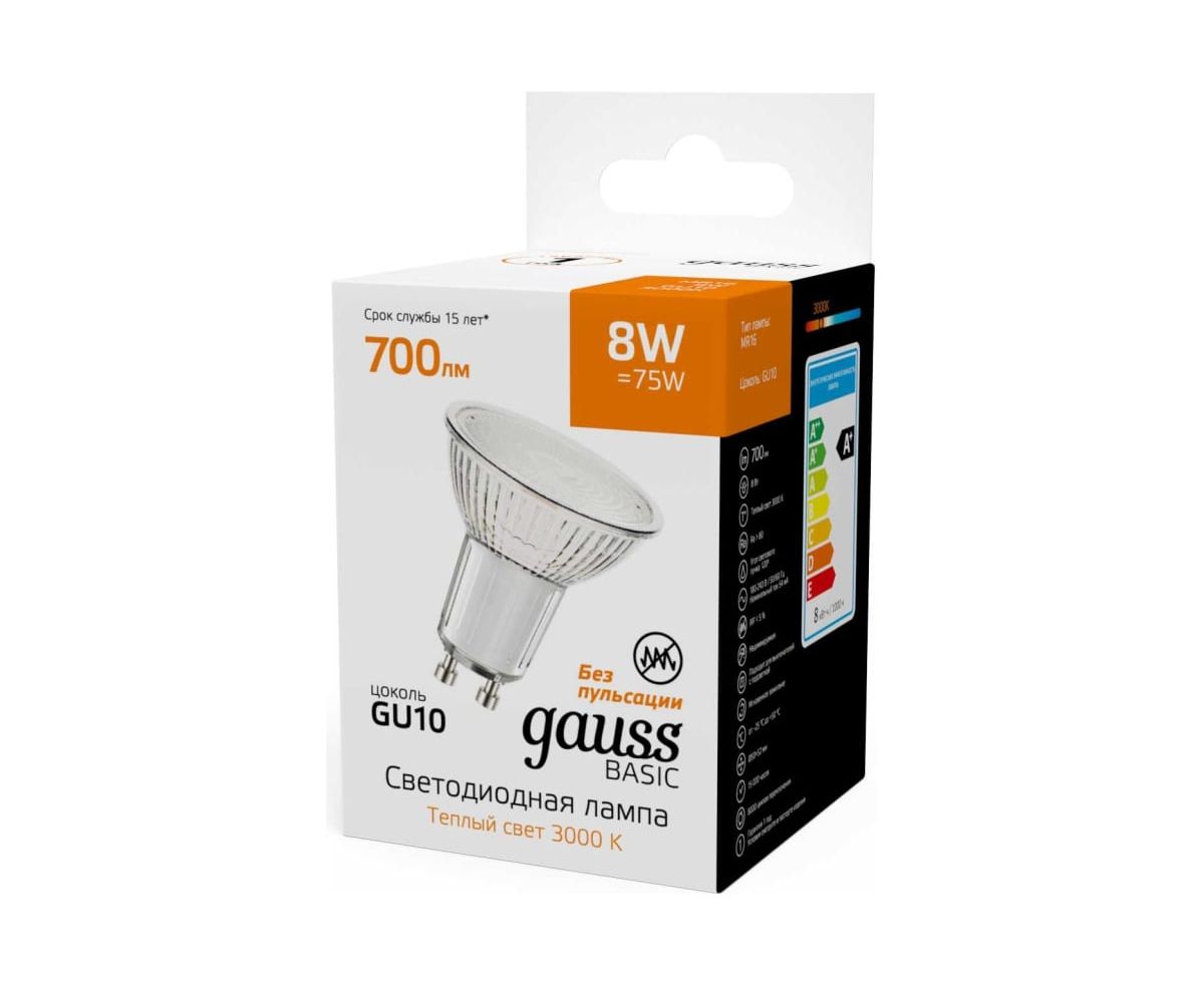 Лампа светодиодная Gauss Basic 10106182 8Вт цок.GU10 софит св.свечения теплый св/дневной