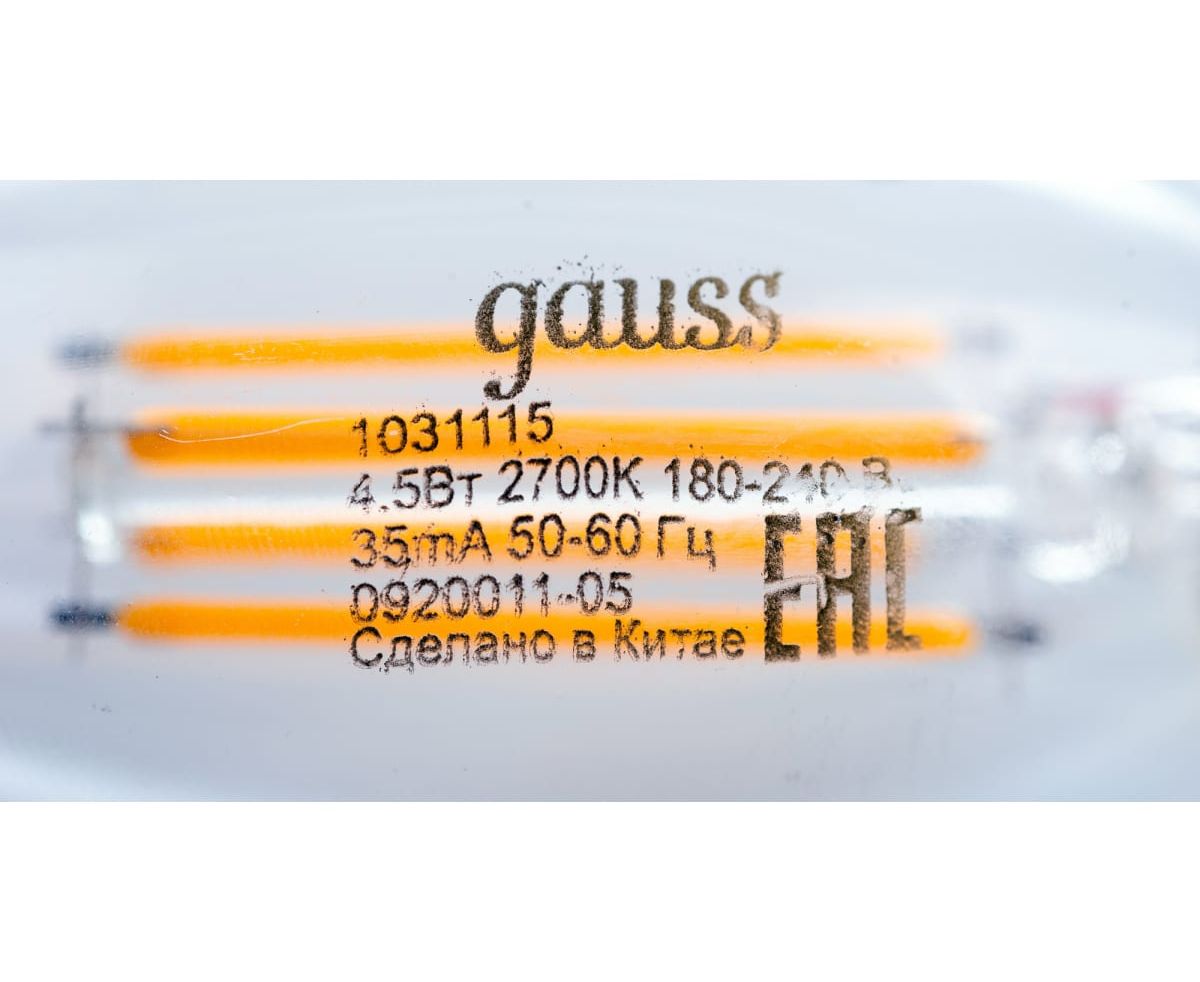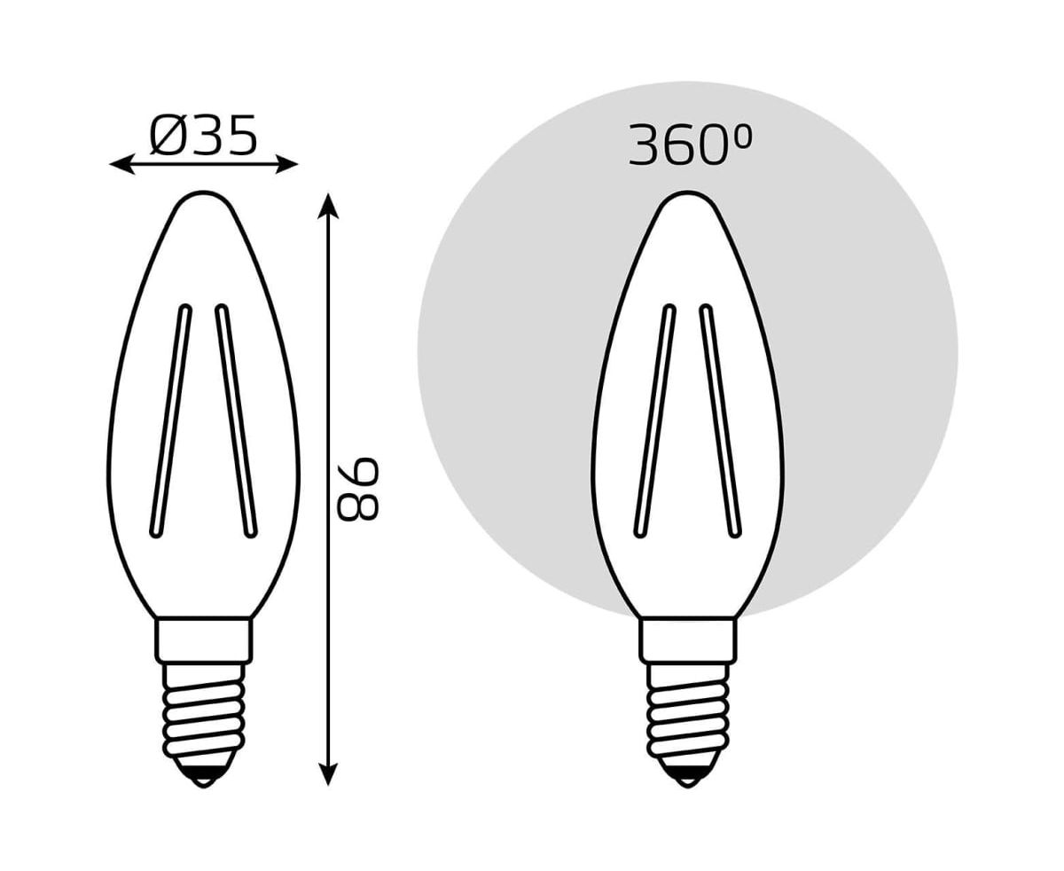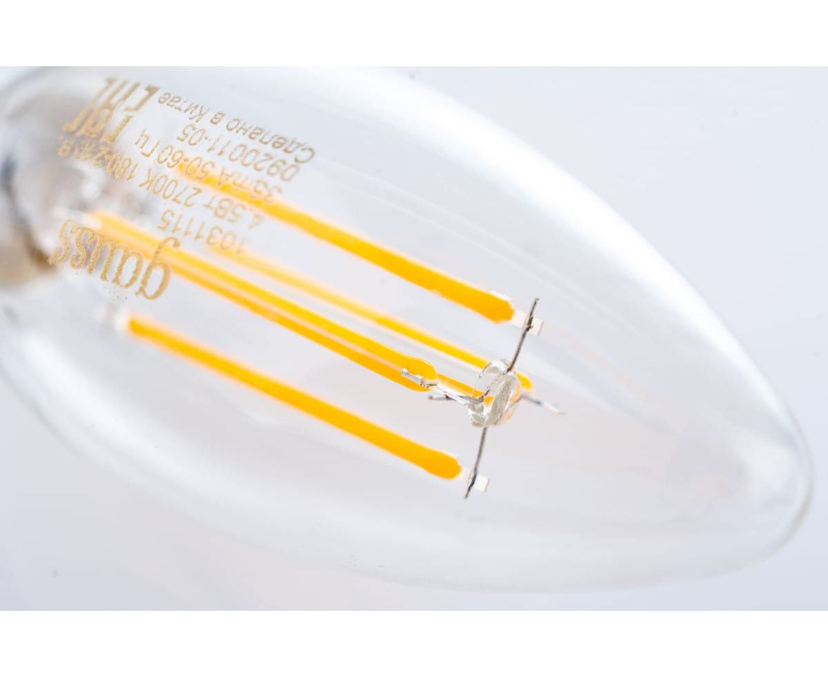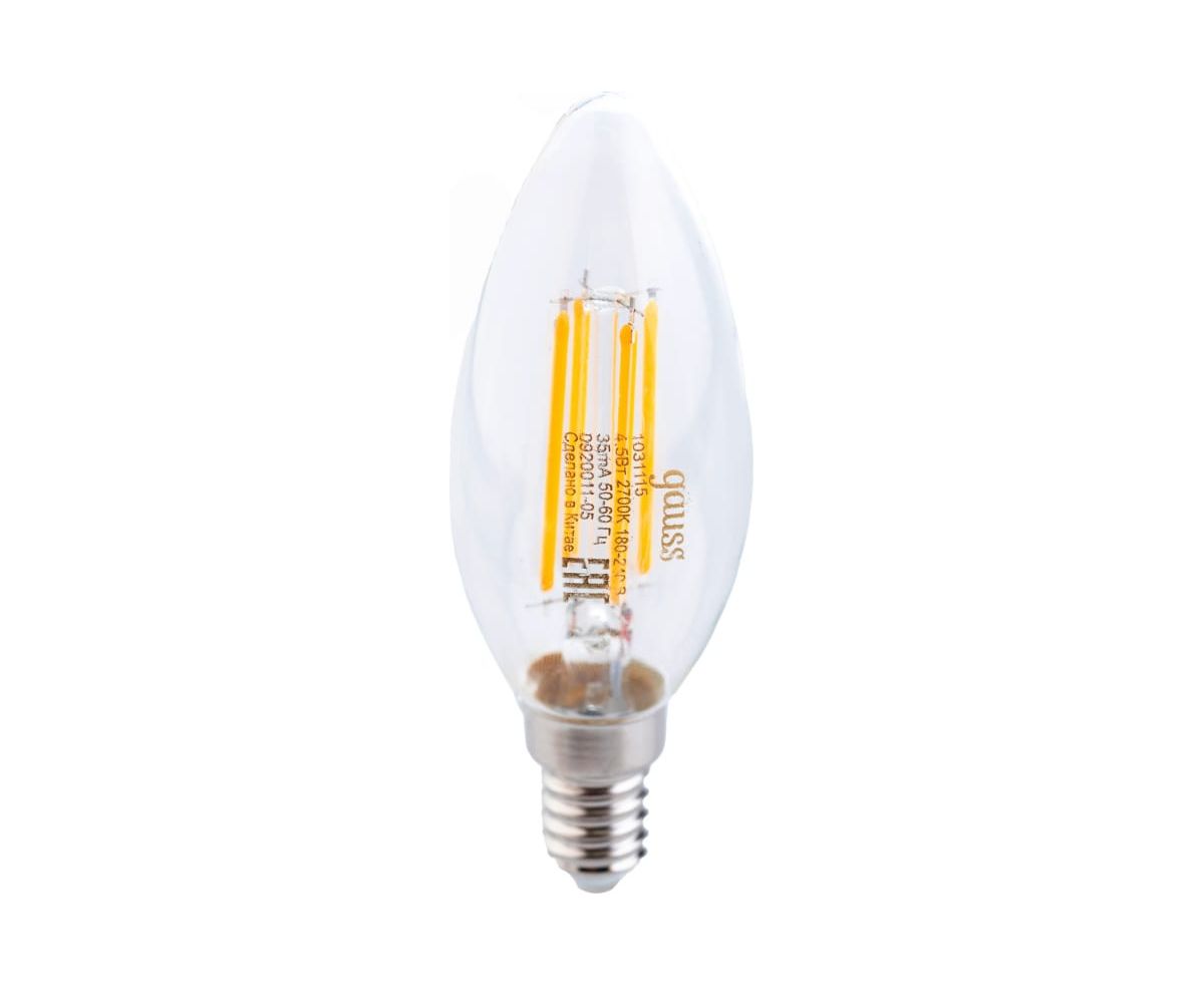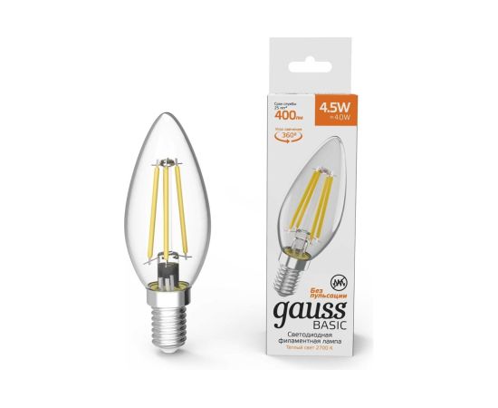 Технические характеристики Gauss Basic Filament свеча, 4,5W, 400lm, 2700К, Е14, LED 1031115