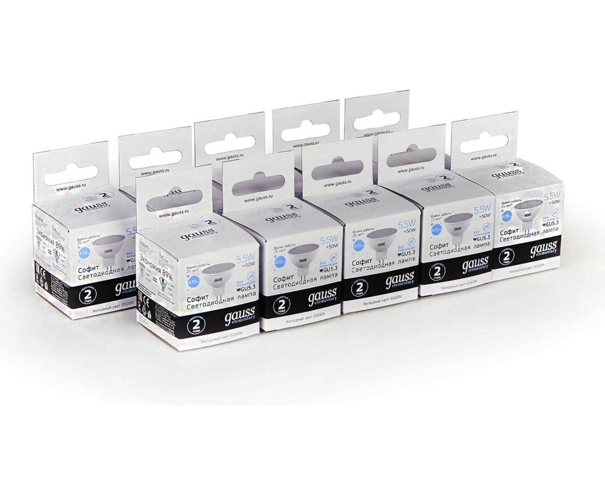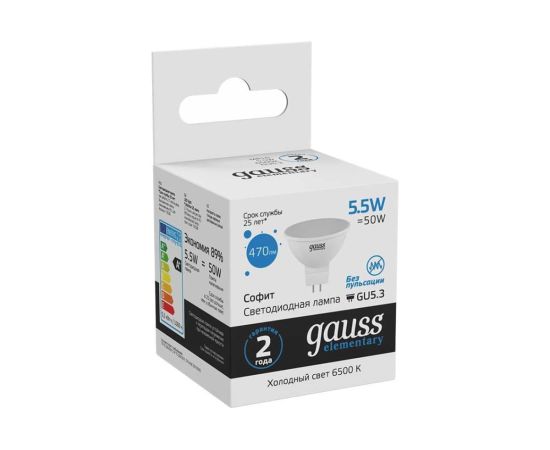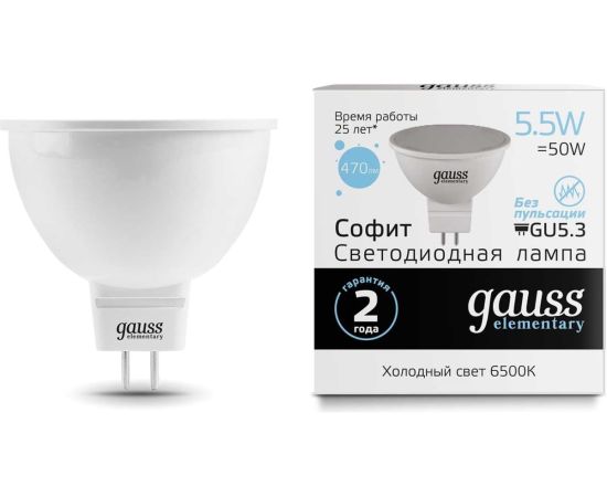 Технические характеристики Gauss Elementary LED MR16 GU5.3 5.5W 470lm 6500К 13536