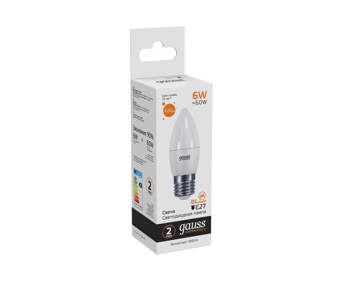 Технические характеристики Gauss LED Elementary Candle 6W E27 2700K 33216