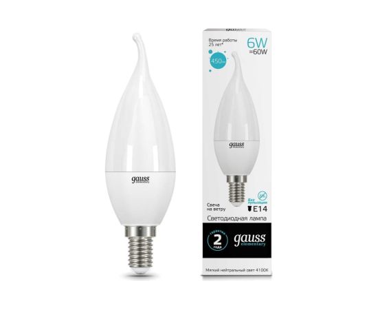 Технические характеристики Gauss LED Elementary Candle Tailed 6W E14 4100K 34126