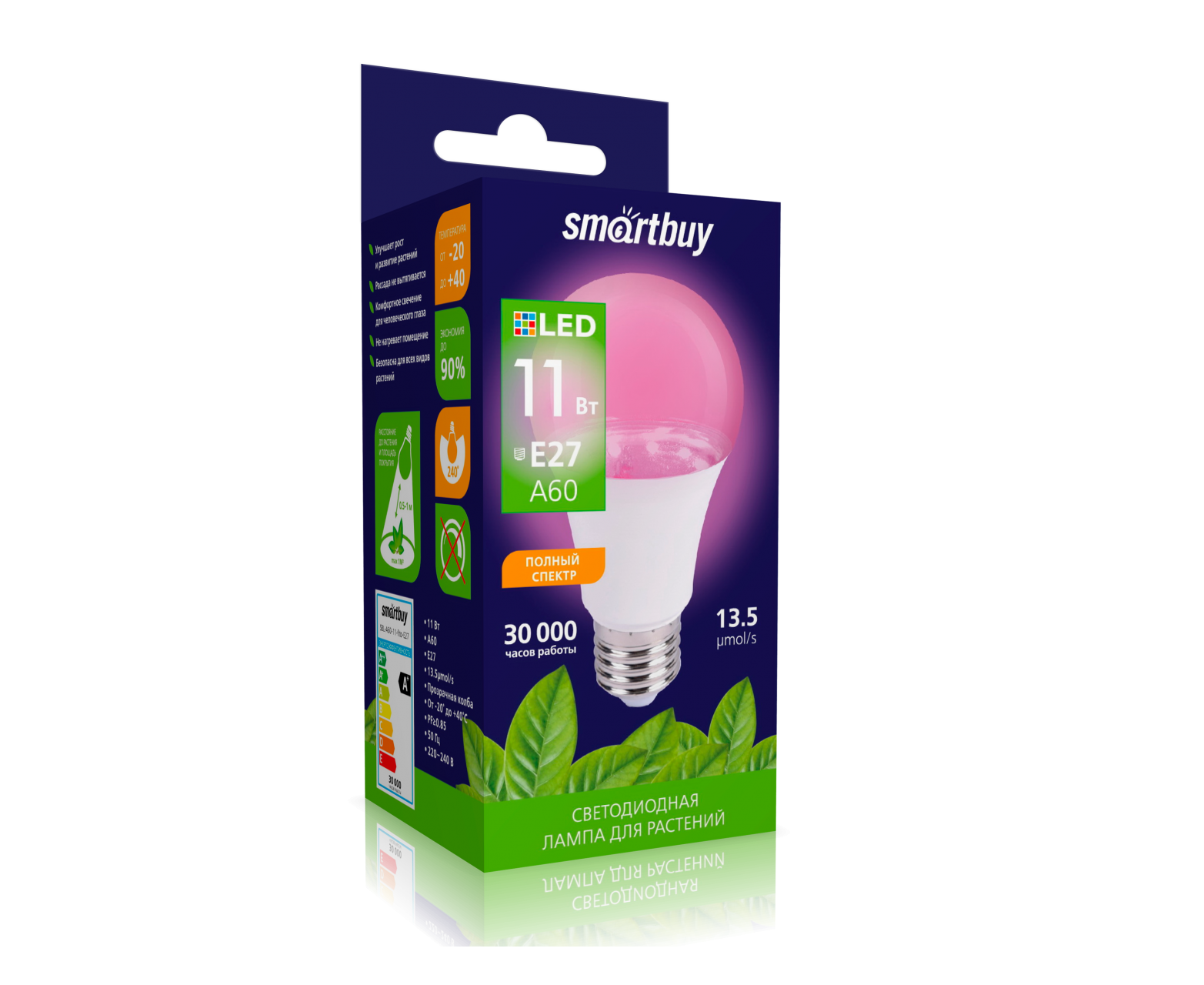 Лампа светодиодная SMARTBUY ФИТО A60 11Вт E27 (фито спектр) (1/10/100)