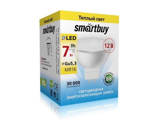 Лампа светодиодная SMARTBUY GU5.3 (MR16) 7Вт 12V 3000K (рефлекторная, теплый свет) (1/100)