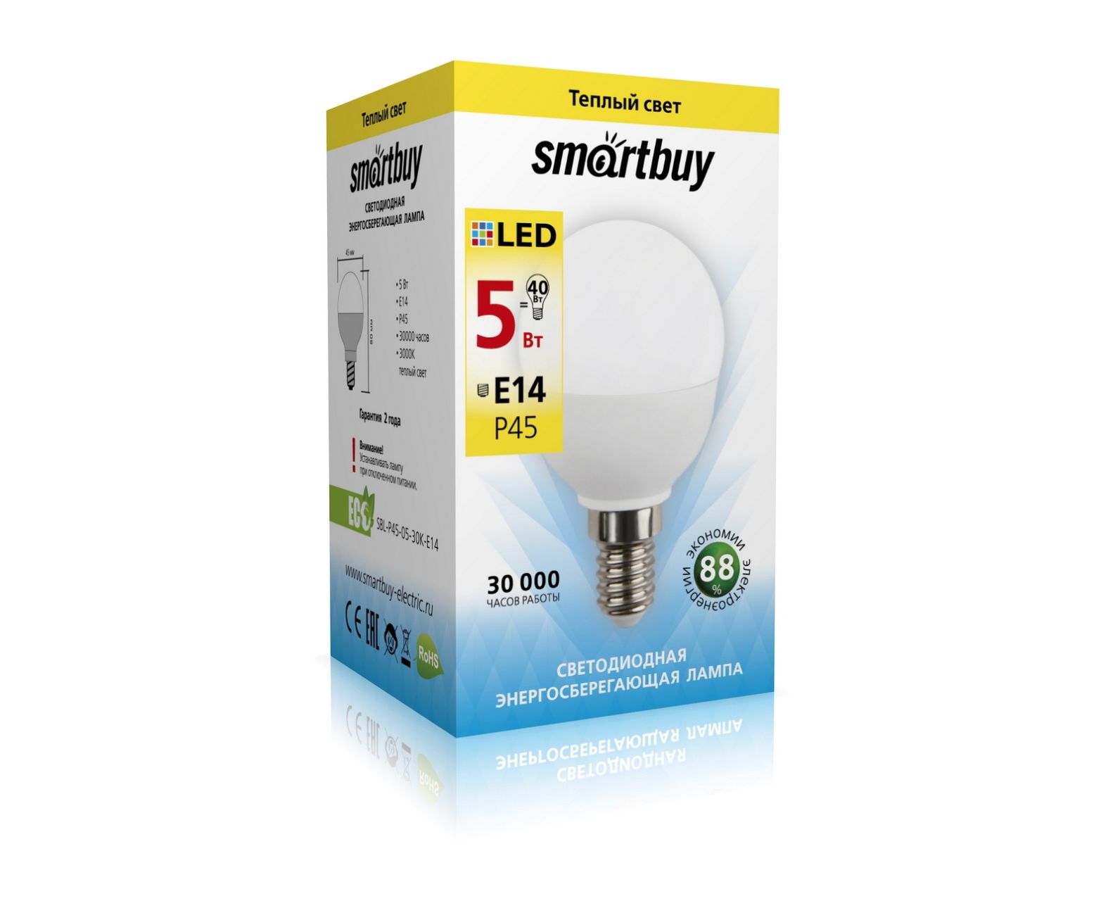 Лампа светодиодная SMARTBUY P45 5Вт 220V 4000K E14 (глоб, нейтральный свет) (1/10/50)