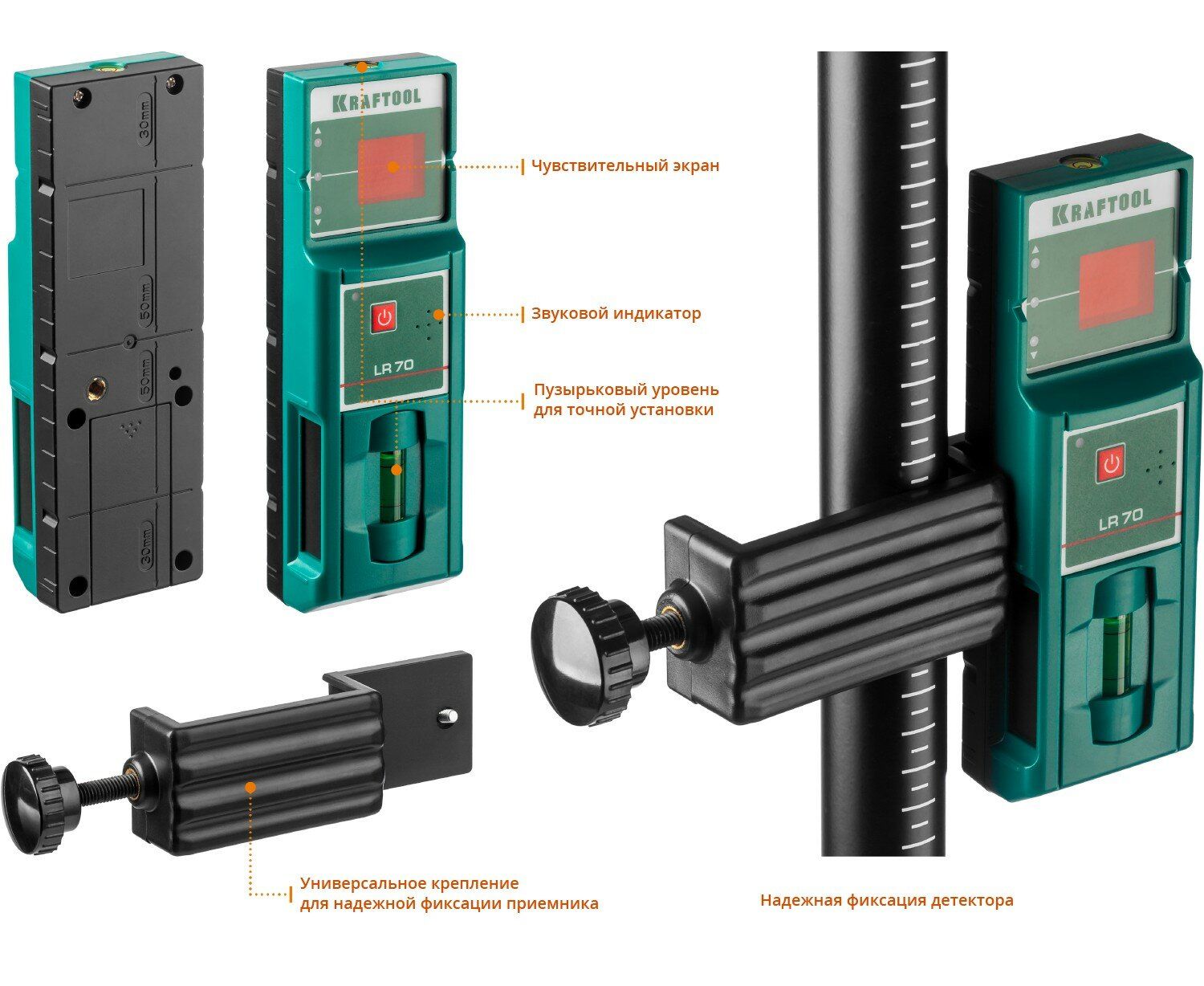 При работе с детектором дальность измерения увеличивается до 70 метров.